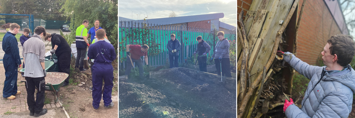 Students take part in numerous gardening and environmental projects set by garden lead Angela, with tasks designed to develop teamwork, communication, independence and employability skills such as following instructions, using appropriate PPE and completing practical tasks safely. The work also provides therapeutic benefits, supporting students’ mental health, reducing anxiety and promoting a sense of calm through nature-based activity.